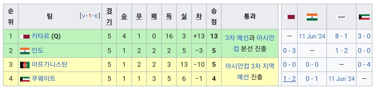 각 조 1위 팀과 각 조 2위 팀이 3차 예선에 진출